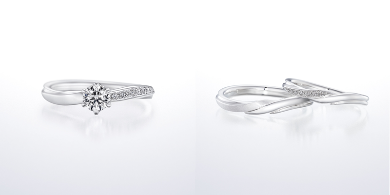 ギリシャ・エーゲ海の輝く水面から連想されて生まれたセットリング。エンゲージリングとマリッジリングがピッタリと重なり、上面はもちろん手のひら側まで美しんウェーブラインです。エーゲ海の美しい波のように、どんなに時が流れても永遠に輝き続けるという意味が込められています。