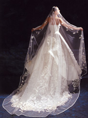 デコラティブなフロント。対照的なバックスタイルはシンプルでありながらも、ソフトチュールの上をウエストからしなやかに流れ出すビーディングレースが凛とした女性の気品と神々しいほどの美しさを感じさせます。トレーンの裾は個性的なバルーン調のシルエット。