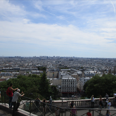Pl. St-Pierre(サン=ピエール広場)の石段が見えてきます。その上にはサクレ・クール寺院が見え写真スポットです。丘からはパリ市内が一望でき石段で座って景色を楽しむ人が多くいます。