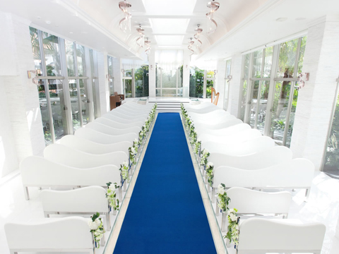 都心にありながら緑に囲まれた贅沢な空間と、洗練されたラグジュアリーな空間とが合わさったチャペル。