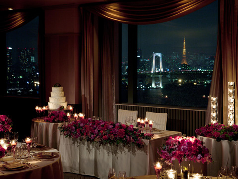 時間の経過によって移り変わる外の様子を楽しむことができる「虹」。人気のナイトウエディングなら、ライトアップされたレインボーブリッジや東京タワーなど、美しい夜景を思う存分堪能できます。