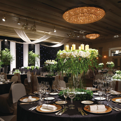 5m超の天井高を誇る「センチュリールームA」は正統派ウエディングにぴったりの会場。 100名以上でもゆったりと過ごせる空間と、華やかな雰囲気は上質な時間をもたらします。