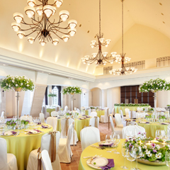 ・美しいシャンデリアのもと、ヨーロッパの大聖堂を思わせるロビーで行うセレモニー